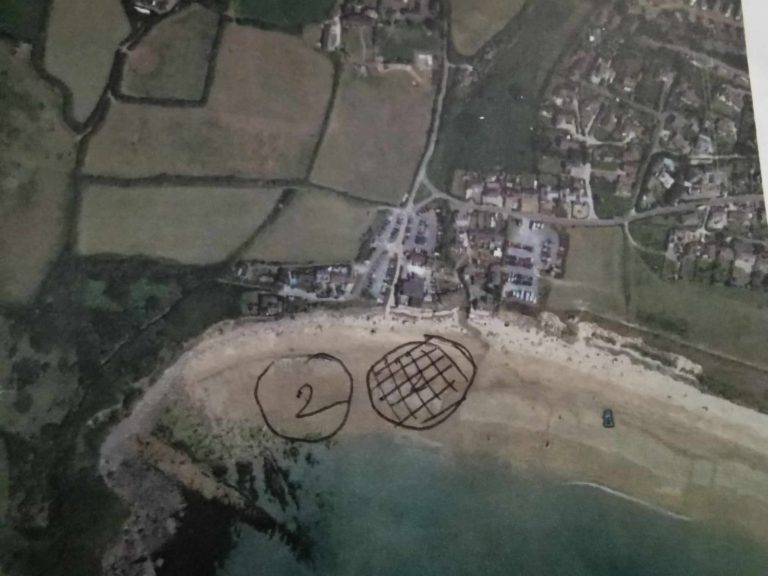 ** »Sur cette photo, vous pouvez voir la zone numérotée 2, envoyée à notre ami (20) le 09/08/2021 pour indiquer l’emplacement supposé des trois coffres sur la plage de Praa Sands. Tous les commentaires relatifs à cette découverte sont disponibles depuis cette date, au début de cet article.