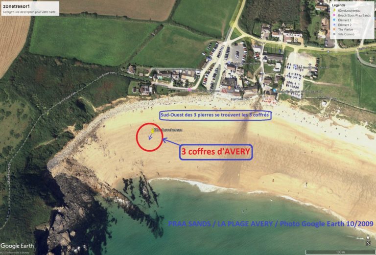 **Praa Sands est peut-être la plage la plus célèbre des Cornouailles, voire même d’Angleterre et d’Écosse. Avery n’est peut-être pas le seul à y avoir caché ses trésors, au pied de ces trois pierres ou rochers… Qui sait ce que l’histoire a pu enfouir ici au fil des 500, 1 000 ou même 2 000 dernières années ?