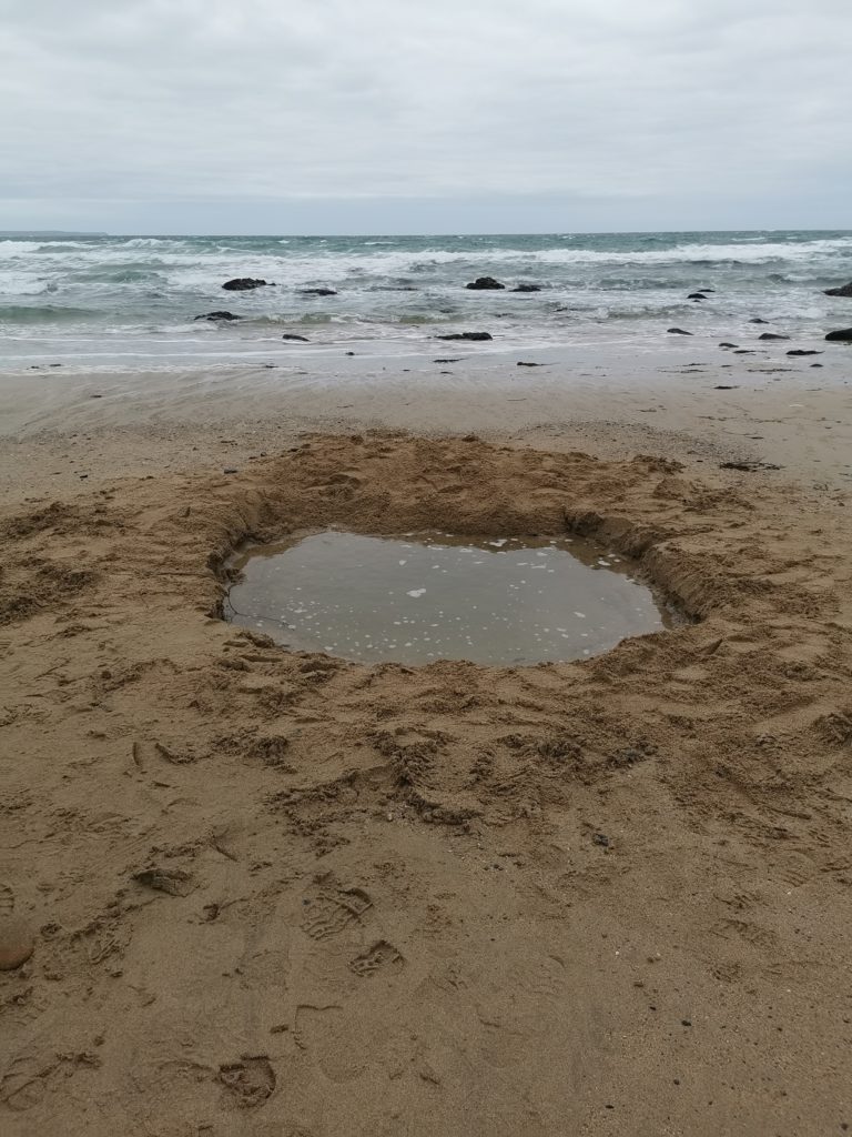 Nous avons creusé de nombreux trous dans le sable de Praa Sands, mais le plus souvent à l’aveugle, car aucun matériel de détection n’a donné de signal clair. Nous avons essayé avec des baguettes, mais sans être certains d’être à la verticale des trois coffres. Peut-être que ces derniers se sont enfoncés dans le sable au fil du temps, et qu’après plus de 300 ans, l’épaisseur du sable est bien plus importante aujourd’hui. Nous pouvions être à seulement quelques centimètres ou à plusieurs mètres de notre objectif, car aucun appareil ne peut fonctionner efficacement dans du sable saturé d’eau.