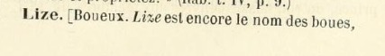 Lize / Boueux. Lize est encore le nom des boues,
