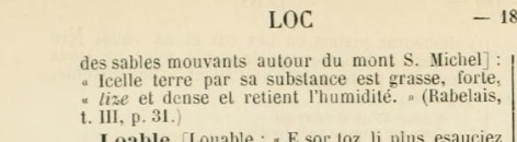 Lise : (Li-z’), n. f. Nom donné, dans la baie du Mont Saint Michel, à la boue des chemins, et, spécialement, aux sables mouvants.