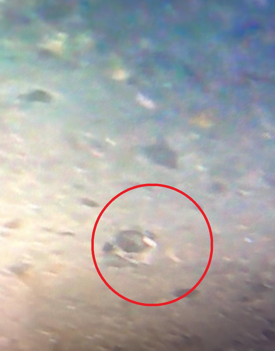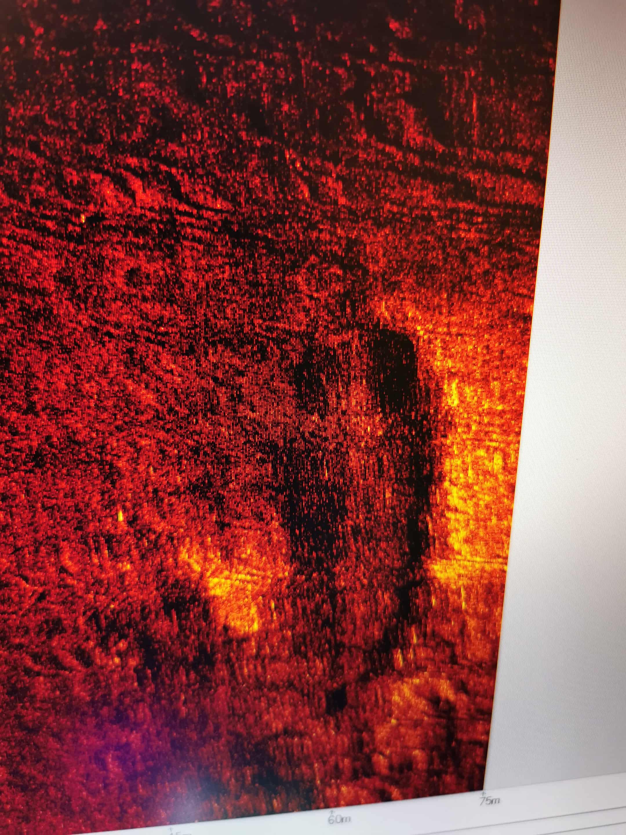 Parmi ces anomalies, une structure semble correspondre à une petite embarcation (type chaloupe), présentant une forme identifiable et des volumes internes distincts.